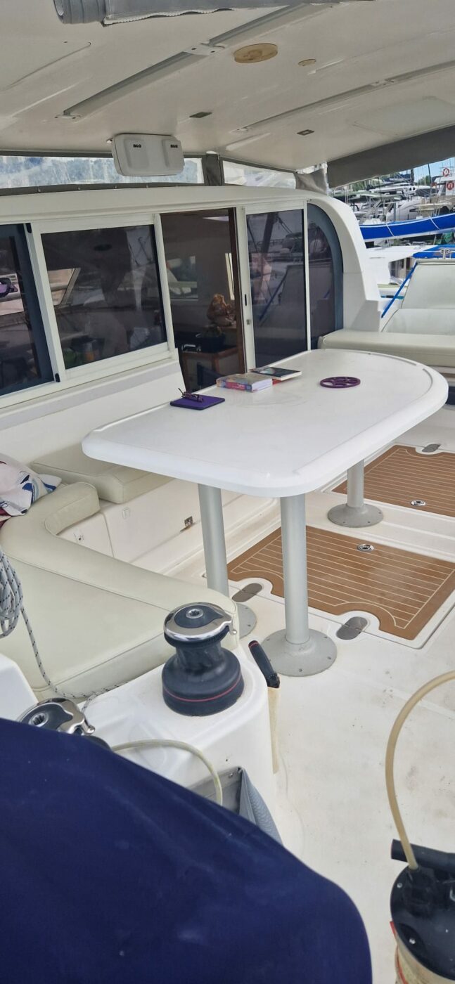 Depuis son départ de France, le bateau n’a navigué que quelques mois par an. Chaque saison se terminait par une mise à sec et un hivernage complet, les propriétaires rejoignant ensuite leur domicile à terre. Cette utilisation modérée et ce suivi rigoureux expliquent le très bon état général du bateau.