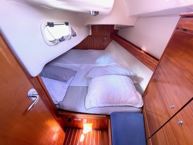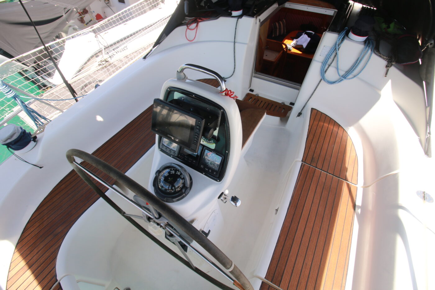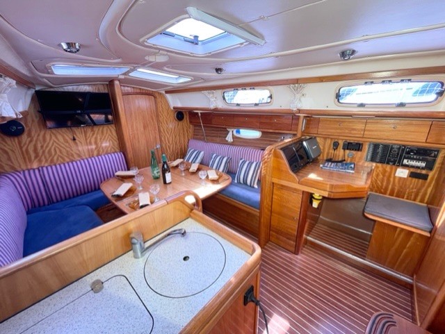 Ce voilier élégant aux lignes intemporelles, solidement construit et remarquablement aménagé, offre de nombreuses possibilités de navigation, aussi bien côtière qu’hauturière. Dans un état impeccable, il est parfaitement équipé pour la navigation en solitaire, avec son génois et sa grand-voile sur enrouleurs.