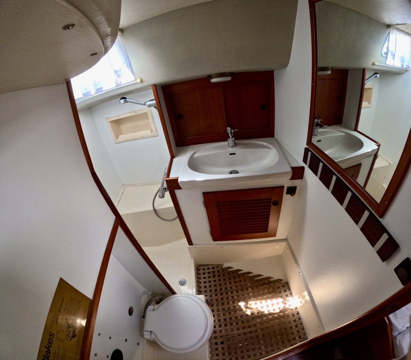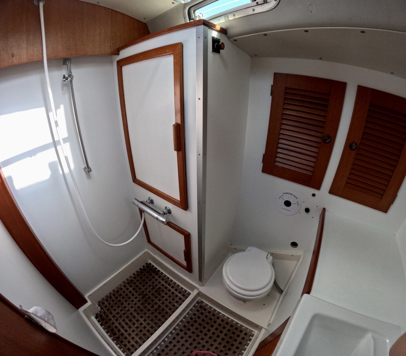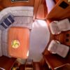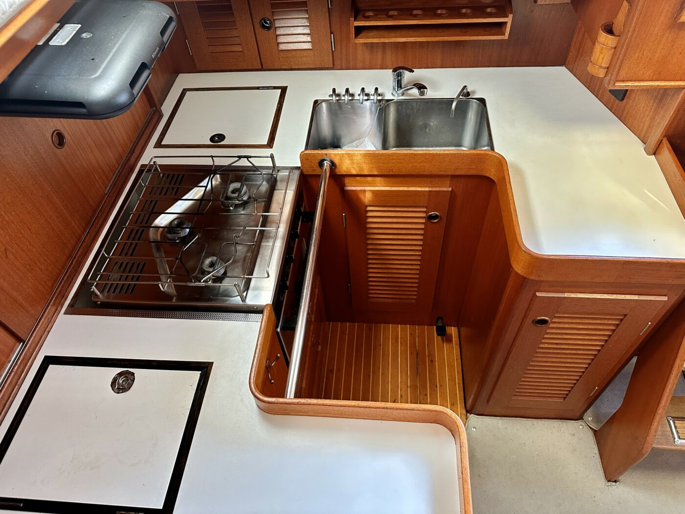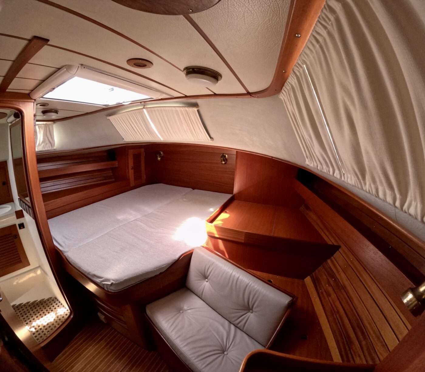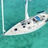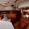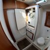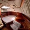 Grâce à ses voiles sur enrouleurs, sa trinquette et à ses deux propulseurs, ce bateau se manœuvre facilement, même en équipage réduit.