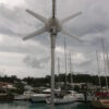 À l’extérieur, le portique en aluminium arrière supporte panneaux solaires, éolienne et annexe, offrant autonomie et confort pour les séjours prolongés en mer.