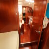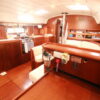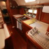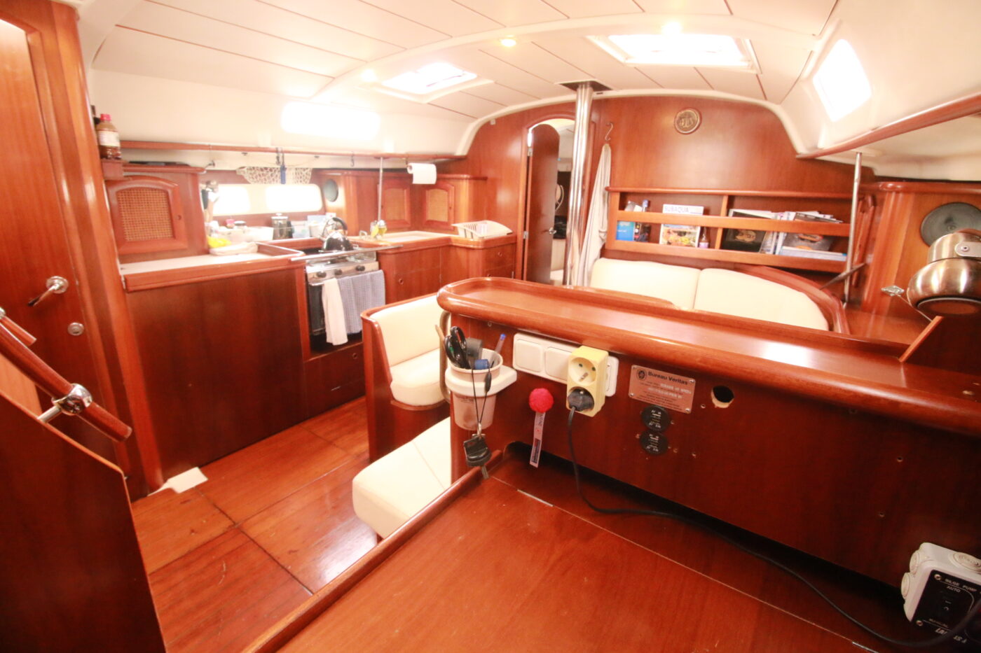 À l’intérieur, le voilier offre trois cabines doubles, deux salles de bains et une cuisine en longueur fonctionnelle, parfaite pour les longues croisières.
