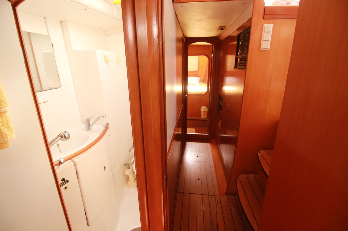 - Version: Charter layout (4 double cabins + skipper / 5 toilets)