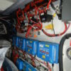 New 2025 engine starter and bow thruster batteries. Large set of all relevant tools and spare parts such as starter motor, folding prop, pumps, MDI, alternator etc.
