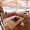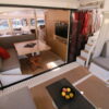 Energy autonomy is outstanding, provided by customized 2,500 W of Solbian FLX walkable solar panels installed in 2025, two high-output alternators, and 1,200 Ah of Mastervolt lithium batteries. Over the last close to six years of cruising, only three gas bottles have been consumed, with diesel heating providing comfort during stays like in New Zealand. Nothing was left to chance: custom-made guardrails and handholds and raised dinghy chocks. The built-in glass roof panel gives improved visibility from the saloon, including a clear view of the sails and an optional second forward hatch increased airflow.