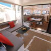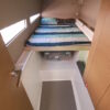 Life on board is particularly comfortable: a luxurious owner’s cabin with a brand-new Tempur mattress, a bright and spacious saloon with a large TV and seamless access to the cockpit, which is fully protected by transparent enclosures, plus a new washing machine and a reliable watermaker.
