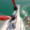 The sail inventory is extensive and perfectly balanced, with a Hydranet mainsail, genoa, and solent by Incidence, maintained 2025 in New Zealand by a professional sailmaker, complemented by an asymmetric spinnaker, two Wingakers, and a gennaker, ensuring performance on all points of sail and in all wind conditions. Both standing and running rigging were renewed in April 2025. The deck layout has been carefully optimized with additional clutches, new anchor points, a Dyneema self-tacking system, and reinforced areas under the cleats, deck, and winches, all designed to simplify handling and further enhance performance.