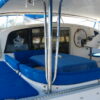 The cockpit is well protected by canvas covers and a solid hardtop, which also allows for rainwater collection. Space is also designed for the installation of a watermaker.